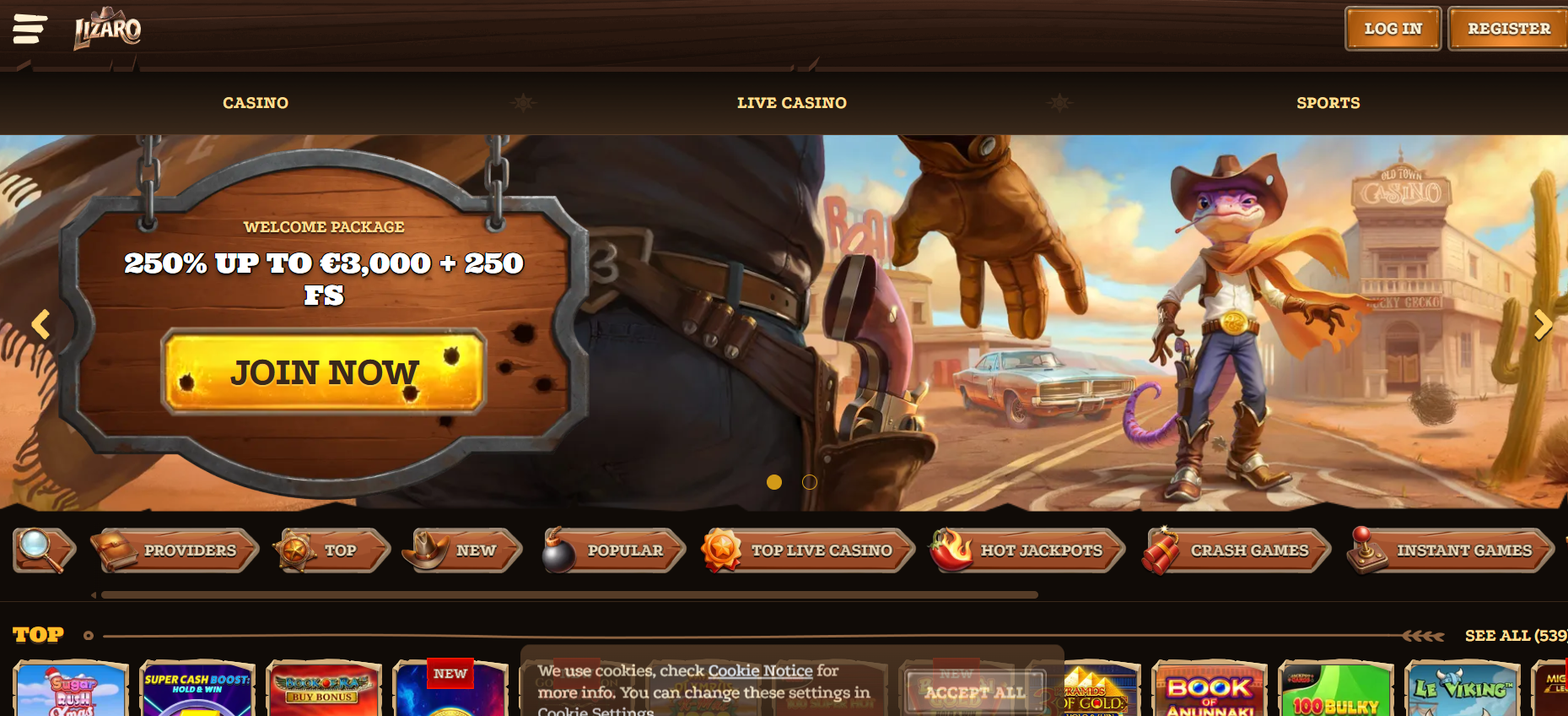- Lizaro – 100% Welcome Offer Up to £3,000 Plus 250 Free Spins